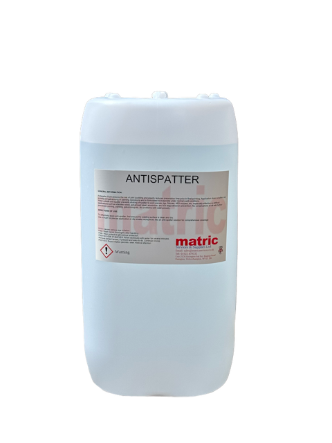 25 Litre Antispatter Fluid reduces the risk of joint puddling and greatly reduces preparation time prior to final painting. Application does not affect any subsequent galvanising or painting operations and is formulated to evaporate under normal weld conditions. Water-soluble anti spatter prevents sticking of spatter to work pieces, jigs, fixtures, MIG nozzles, etc. especially effective on difficult applications such as stainless steel, galvanised steel, aluminium, arc A/S slag-adhesion prevention. No complications at all with further processes: priming, painting, galvanising etc. No problems with weld porosity.