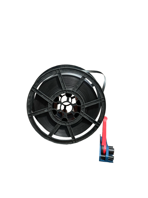 Polypropylene plastic banding supplied on reels suitable for hand banding. 12mm black