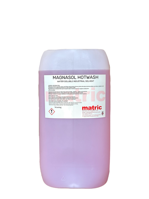 Water Soluble Industrial Solvent - Magnasol Hotwash quickly cleans and floats away grease, oil, wax, carbon, inks, dye, creosote, mildew and other stubborn soils yet requires no scrubbing and leaves no oily residue or film. Effective on metals, plastics, rubber and concrete. Safe on steel, aluminium and other metal. Great addition to metal parts wash machines / drum washers.