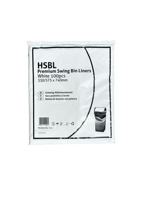 White Medium Duty Swing Bin Liners to fit swing bins and many other generic bins. (45 litres) Made with 30% Recycled material.